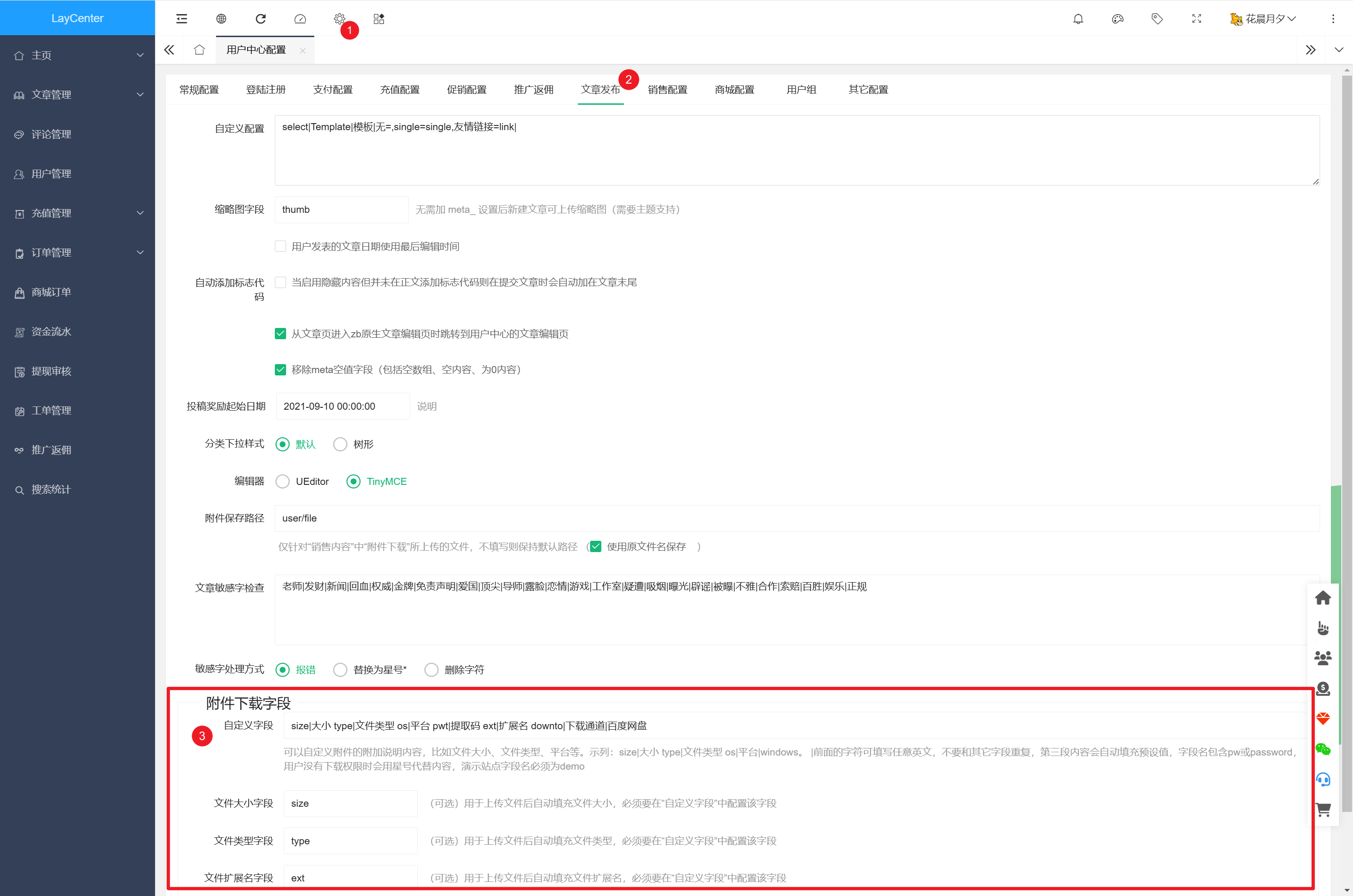 用户中心配置-发布配置-附件下载字段-自定义字段